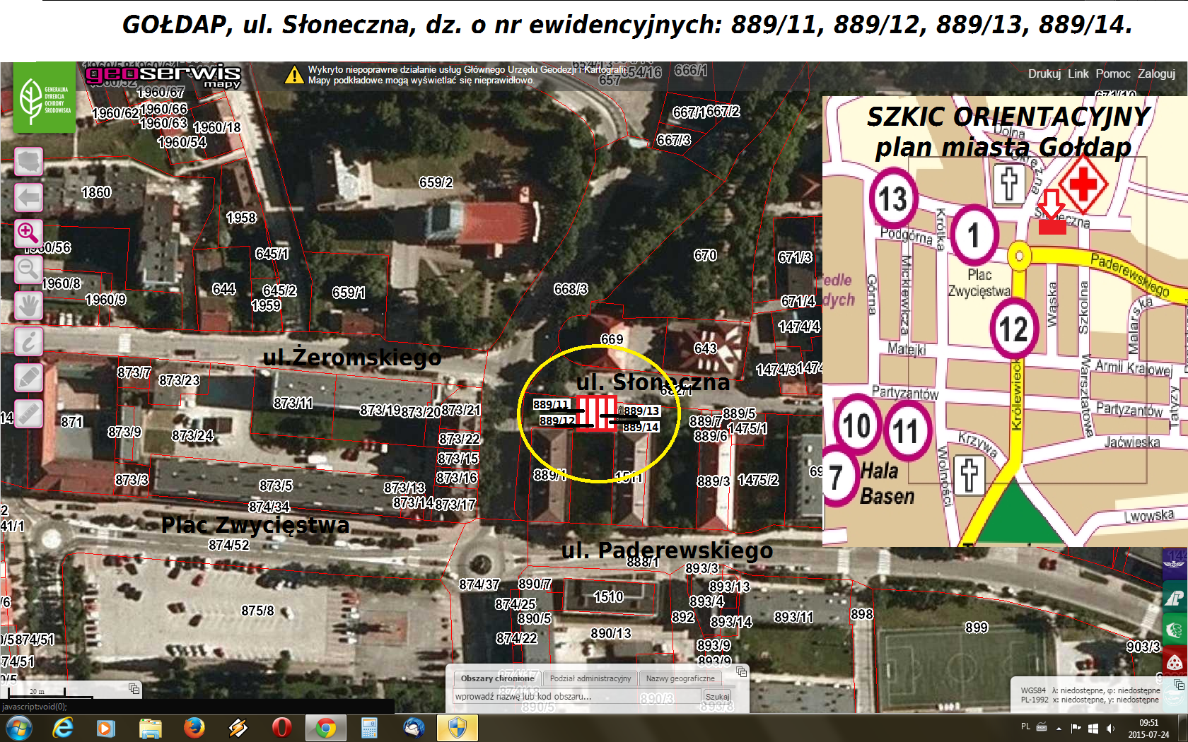 Ogłoszenie I przetargu ustnego nieograniczonego na sprzedaż nieruchomości składającej się z działki Nr 889/11 zabudowanej o pow. użytkowej 14,58 m2 w Gołdapi przy ul. Słonecznej